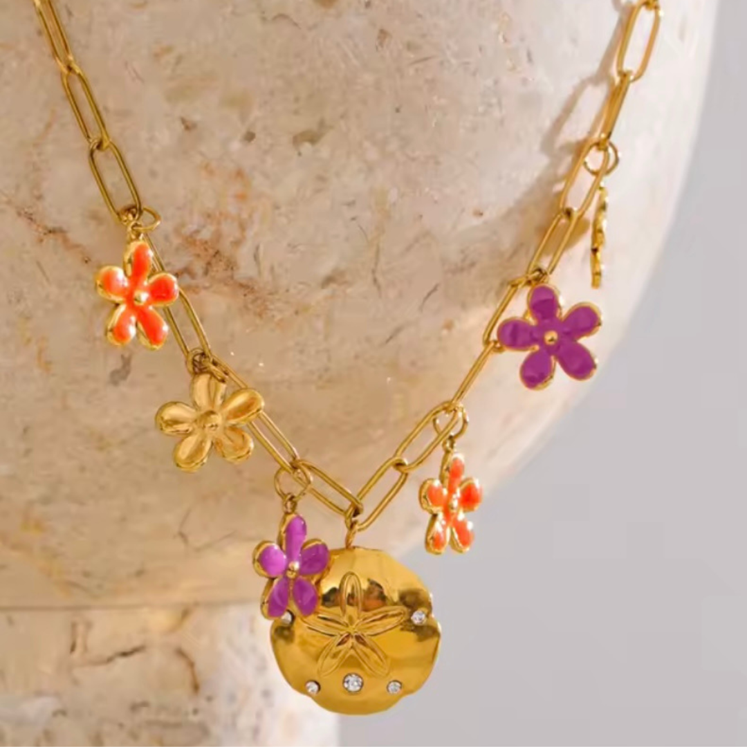 Dê um toque de frescura e sofisticação ao seu look com o nosso pendente em forma de flor, adornado com verniz vermelho e roxo. O seu design delicado e moderno torna-o um acessório essencial para todas as fashionistas que procuram originalidade. Seja para uma ocasião especial ou para realçar o seu look do dia a dia, este pendente vai cativar a atenção de todos.