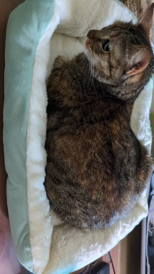 Uma cama confortável que parece aconchegante. O gato ainda não experimentou. Espero que seja entregue a ela mais tarde. Enquanto isso, eu abri e parece grande e espaçoso.