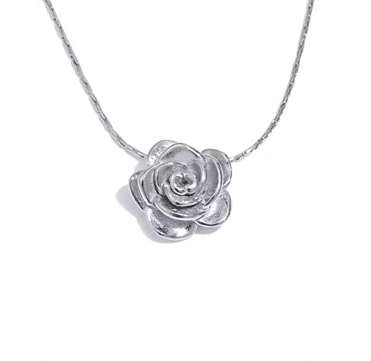 Dê um toque de requinte ao seu estilo com o nosso colar Pink Flower em aço inoxidável.