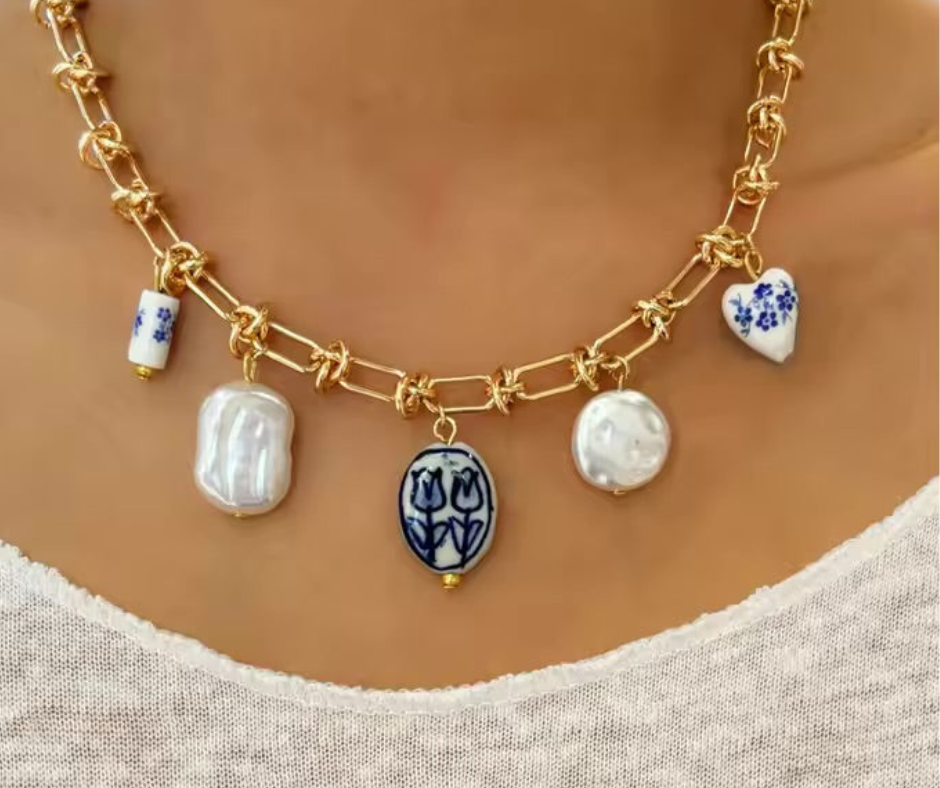 Este colar é fabricado em aço inoxidável, um material conhecido pela sua resistência à corrosão e pela sua durabilidade. O berloque em cerâmica, combinado com imitações de pérolas, confere a esta peça de joalharia um aspeto sofisticado, ao mesmo tempo que é leve e confortável de usar. Assim, pode desfrutar do seu colar todos os dias com toda a confiança.