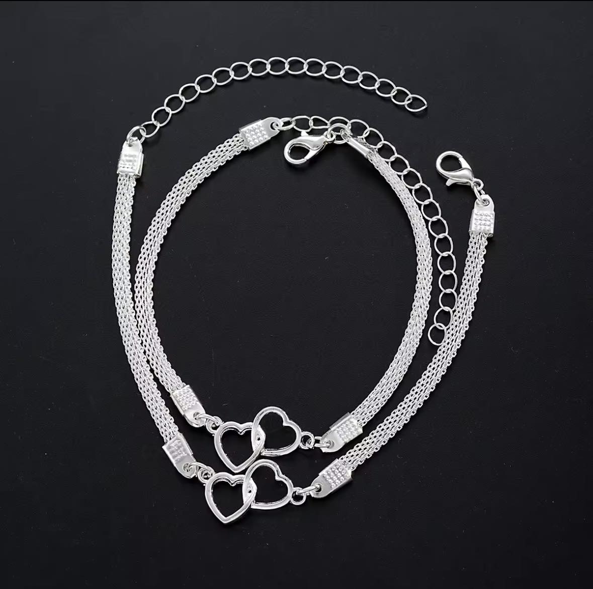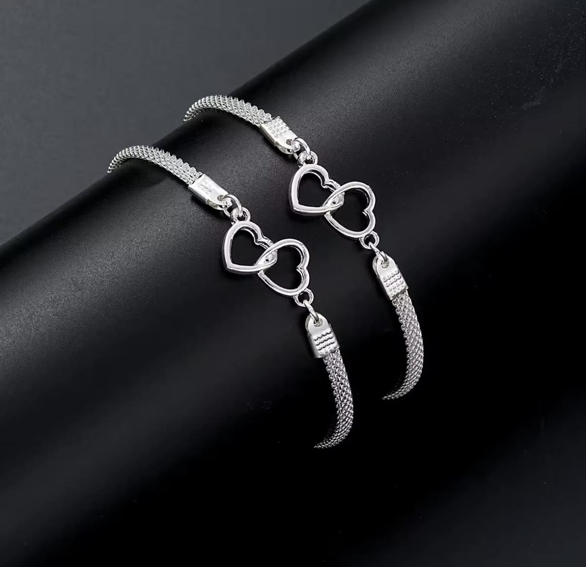 Este conjunto de 2 pulseiras em forma de coração simboliza os laços profundos que unem duas pessoas. Seja entre amantes, mãe e filha, ou melhores amigas, estas joias representam apego, ternura e cumplicidade. Uma joia delicada para partilhar com alguém especial.