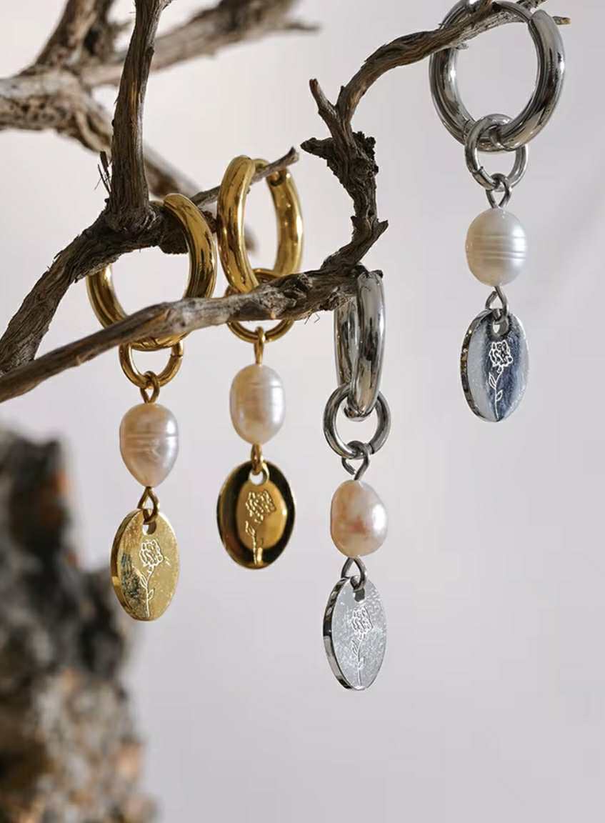 Deixe-se seduzir por estes brincos chiques em forma de flor, meticulosamente trabalhados à mão. Cada peça combina a suavidade de uma pérola natural com a delicadeza de um elegante design de gota, para um acabamento delicado e intemporal. Estes brincos encarnam o espírito requintado de Rosevasion - floral, poético e ultra-feminino.