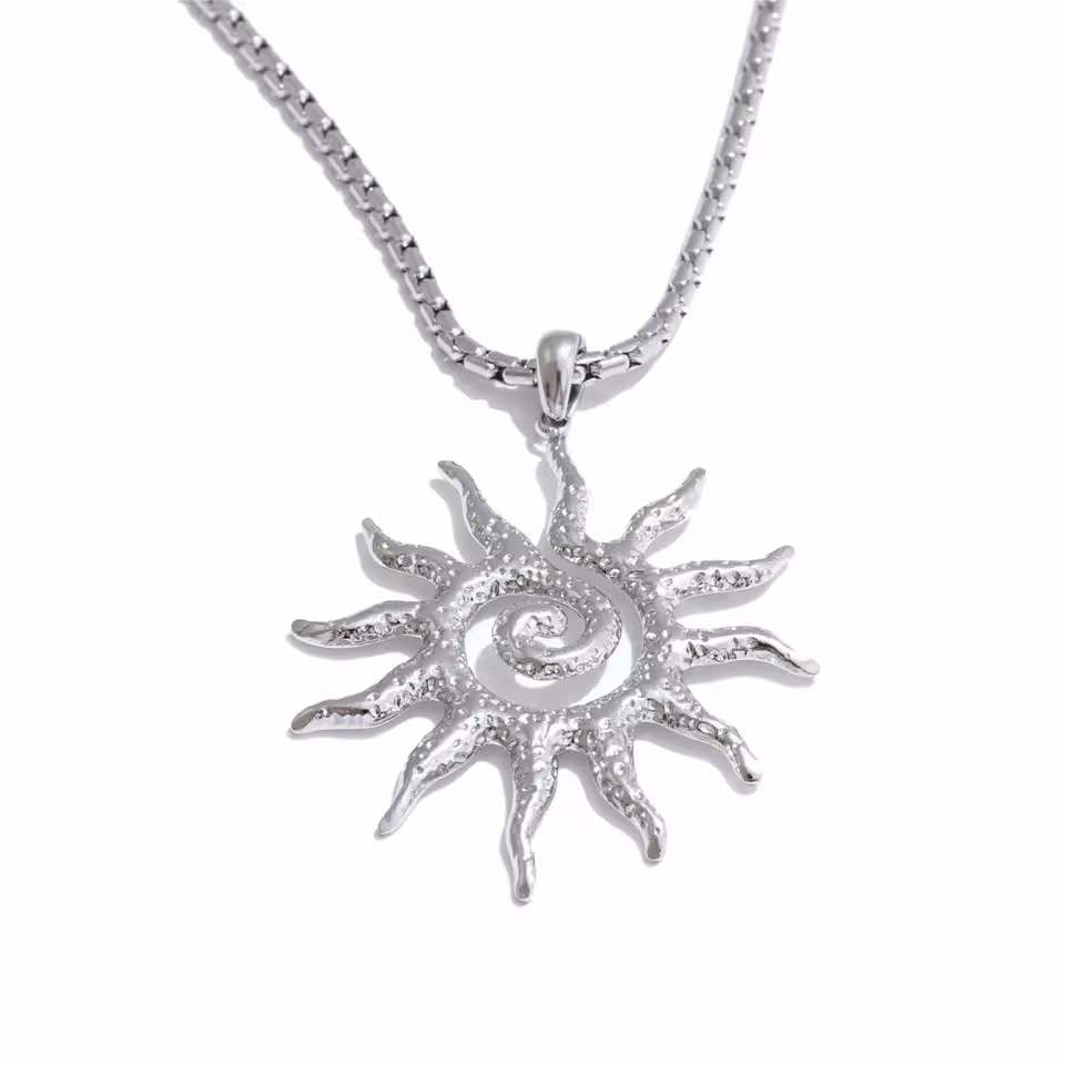 Descubra o colar “Luz do Sol”, uma peça de joalharia em aço inoxidável que alia elegância e durabilidade. Concebido para resistir ao embaciamento, este colar é perfeito para quem quer usar acessórios que mantenham o seu brilho ao longo do tempo. O seu acabamento meticuloso e o seu design requintado fazem dele a escolha ideal para qualquer ocasião, desde uma saída casual a uma elegante saída à noite.