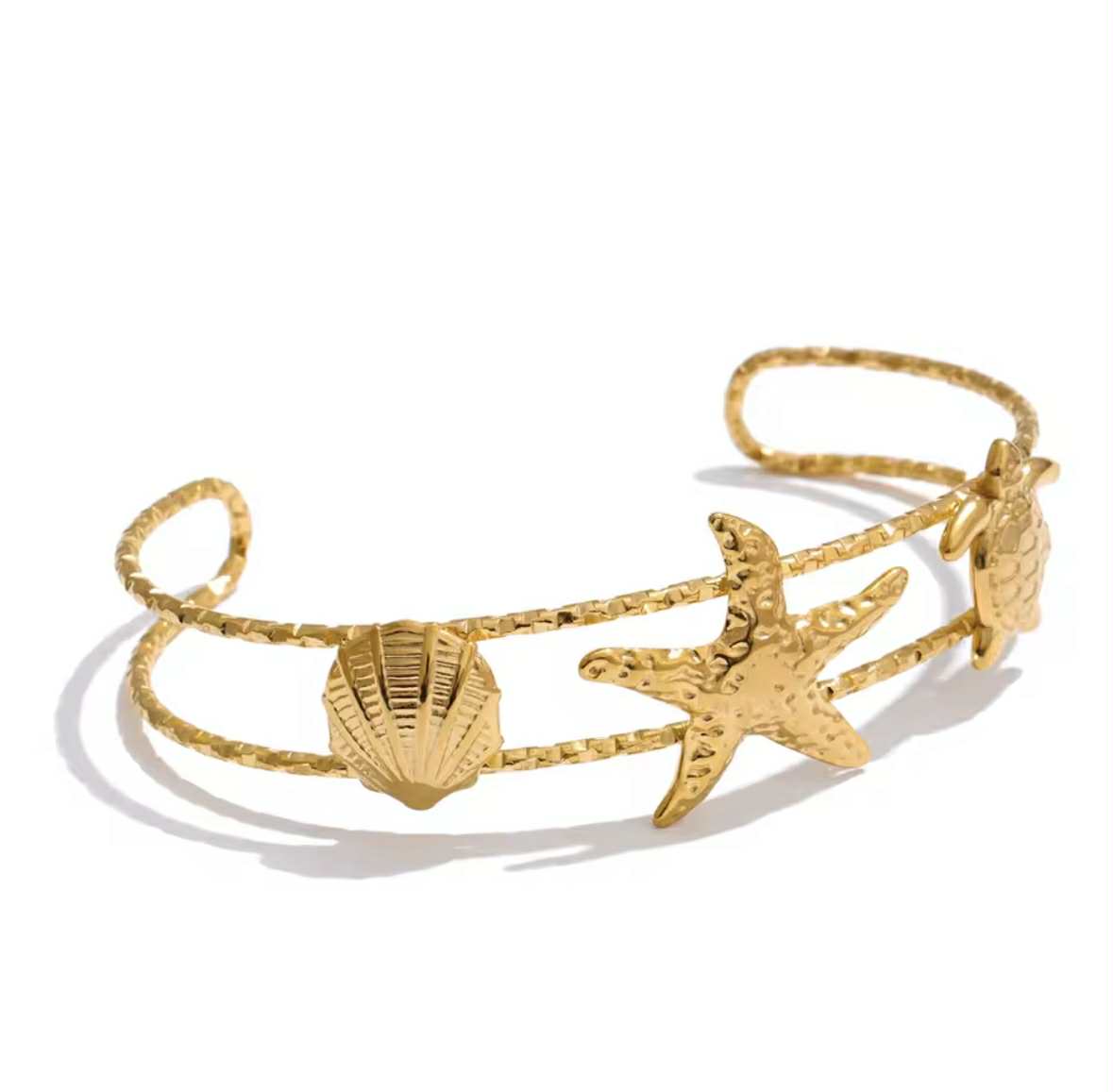 Criada para acompanhar os seus momentos de relaxamento, esta pulseira aberta é ideal para as férias de verão. Fácil de usar, adapta-se a qualquer look e acrescenta um toque de frescura e charme ao seu look. Deixe-se seduzir por esta joia que evoca o mar, o sol e a liberdade do verão.