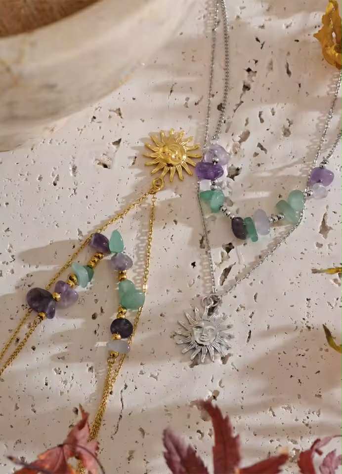 Descubra este magnífico colar adornado com uma pedra natural cuidadosamente selecionada, acrescentando um toque de autenticidade e beleza ao seu estilo. Cada pedra é única, oferecendo um brilho subtil e natural que realça a sua roupa no dia a dia ou em ocasiões especiais.
